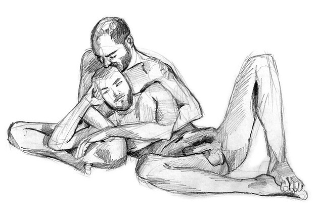 Dessin de Michel Lafontaine - Couple sans vêtements