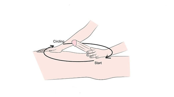 Ce geste s’inspire du shiatsu, une technique japonaise qui stimule les points d’énergie du corps. Ici, il permet d’activer subtilement la circulation énergétique le long du lingam, favorisant la détente, l’enracinement et l’éveil sensoriel. Restez attentif à la respiration et au ressenti de la personne massée, afin que le mouvement conserve sa qualité méditative et bienveillante.